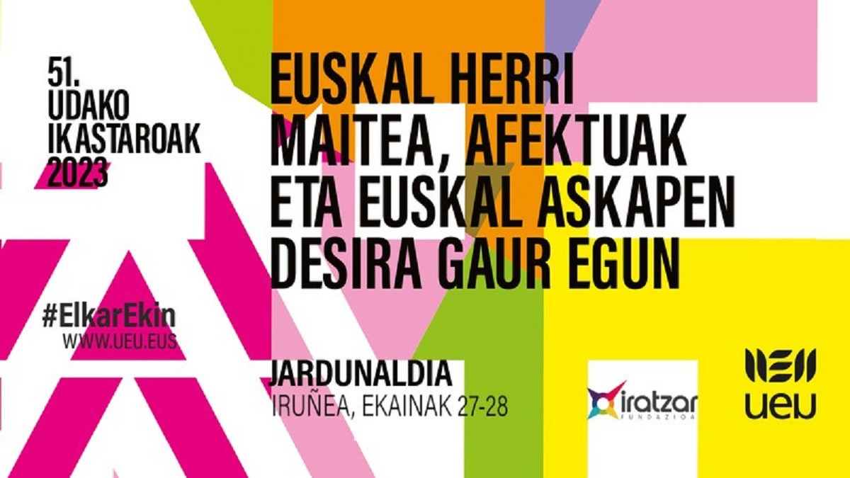 Dagoeneko izen ematea zabalik UEUk eta Iratzar Fundazioak elkarlanean antolatu dugun tailerrean parte hartzeko: «Euskal Herri maitea, afektuak eta euskal askapen desira gaur egun». Ekainaren 27an, asteartea, [09:45etik 17:30ak arte] eta 28an, asteazkena, [10:00etatik 13:00ak arte] Iruñeako Katakrak gunean egingo dugu ariketa kolektibo hau.
